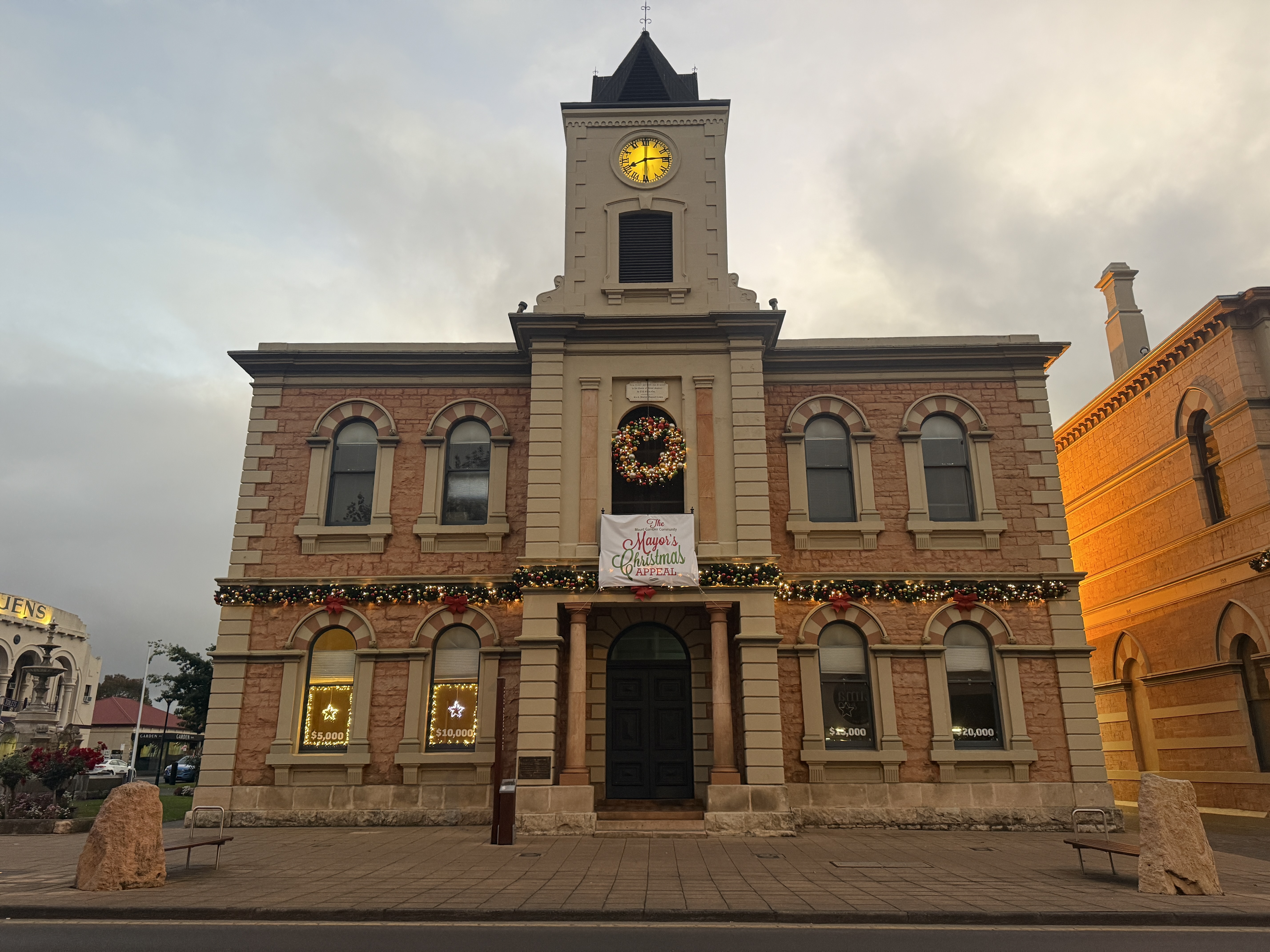 The windows of the Old Town Hall on Commercial Street are once again lighting up for Christmas, with two windows already illuminated as the Mount Gambier Community Mayor's Christmas Appeal surpasses $10,000 in donations.
